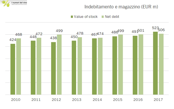 • La parte finanziaria vede un debito in crescita di 5 milioni a 506 milioni che però si confronta con un magazzino passato da 491 a 523 milioni di euro, consentendo dunque finalmente al gruppo di invertire il rapporto dopo che per diversi anni il debito superava il magazzino. La crescita di 5 milioni deriva da un flusso di cassa stabile a 17 milioni (come abbiamo visto grazie alla parte finanziaria e fiscale), un incremento degli investimenti da 8 a 10 milioni, dividendi stabili per 2.5 e un assorbimento di capitale circolante (vedi magazzino) di 10 milioni di euro.