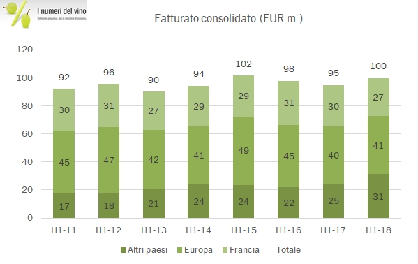 Anche nel primo semestre 2018 Laurent Perrier si dimostra il punto di riferimento delle piccole case di Champagne quotate in borsa in termini di performance economico finanziaria. La focalizzazione su un marchio unico, lo sforzo di elevare la gamma prodotto verso l’alto, la migliore diversificazione geografica hanno tutte contribuito a ottenere eccellenti risultati finanziari nel primo semestre 2018: vendite cresciute del 5% (essenzialmente grazie al mix di prodotto e nonostante il calo nel Regno Unito), utili in crescita del 20% a livello operativo e del 30% a livello di utile netto, raddoppio degli investimenti e incremento leggero del debito totalmente legato alla dinamica del magazzino (che vale quasi il doppio del magazzino, segno di una forza finanziaria superiore ai concorrenti). Ovviamente come per tutti i produttori di Champagne, la stagione invernale è chiave, anche se nel caso di LP i dati sono più bilanciati, in quanto stiamo commentando il semestre aprile-settembre. E non dobbiamo dimenticarci che le nubi di Brexit restano all’orizzonte… ma per ora passiamo ai dati.