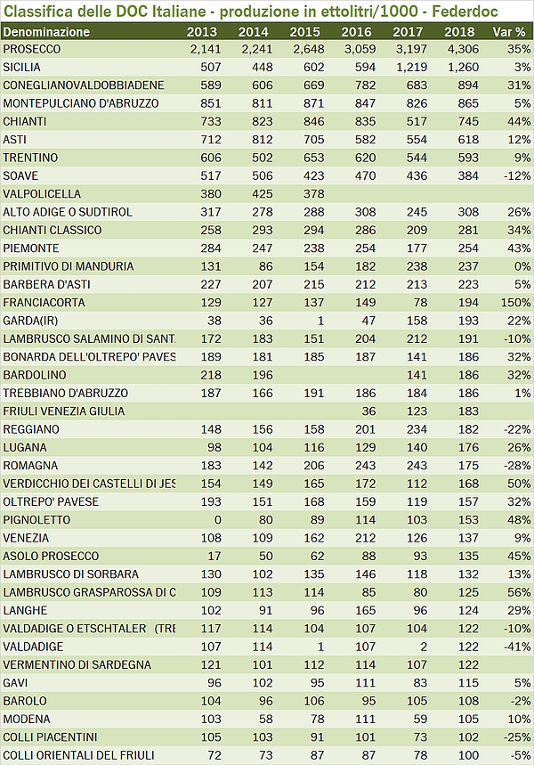 Andiamo diritti al punto: I dati che trovate qui sono della produzione di vini DOC relativa al 2018. Siamo a fine 2020. I dati che trovate qui sono raccolti da Federdoc e pubblicati in un compendio chiamato VQPRD, reso disponibile sul sito. Federdoc chiede agli enti certificatori e alle camere di commercio i dati per compilare il compendio. Non tutti rispondono. Come mai Siquria (ne prendo una che è anche quella più eclatante per la rilevanza delle DOC che certifica) che è incaricata di certificare molte delle DOC venete non fornisce i dati? Non sono io che devo dare una risposta, ma chi paga Federdoc e Siquria. Io, e voi di conseguenza, ricevo soltanto una cattiva informazione, di cui posso lamentarmi ma niente di più.