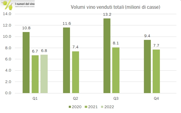 Comunque tornando a noi e al vino, il primo trimestre chiude con spedizioni di 6.8 milioni di casse, +1%, di cui 5.8 in USA -3%, un fatturato di 465 milioni di dollari, +2%, incluso 60 milioni di spiriti e un utile operativo di 91 milioni, tornato sotto il 20% dopo i buoni risultati della parte finale del 2021. A tale proposito, l’azienda ha reso noto i dati relativi all’aggravio di costi per l’inflazione e l’incremento dei costi di logistica, rispettivamente di 21 milioni (uva e vetro) e 9 milioni. Se prendiamo questi 30 milioni di dollari e li confrontiamo con il fatturato arriviamo a un impatto molto negativo sul margine dell’azienda, di circa 6 punti percentuali (dal 20% riportato sarebbe stato 26%). Segnamoci questo numero perchè ne parleremo spesso durante quest’anno.