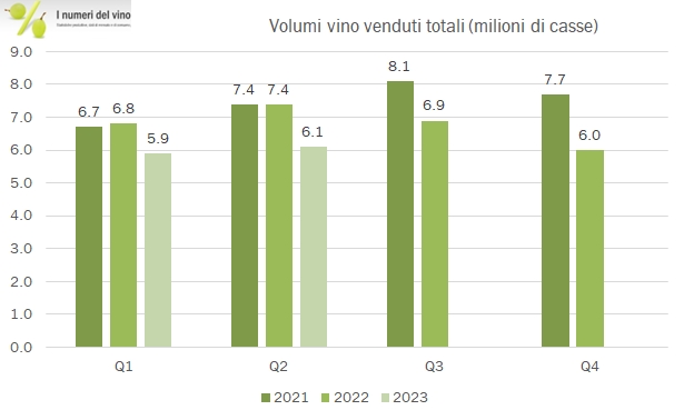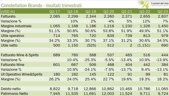 Che il 2023 non sia un buon anno per il vino in USA lo si legge molto bene dai dati pubblicati a inizio ottobre da Constellation Brands, relativi al secondo semestre dell’anno. Benchè nel complesso l’azienda continui ad andare bene (le indicazioni sugli utili a fine anno sono state alzate leggermente), ciò è legato alla crescita del segmento birra. Nella parte relativa al vino, che il secondo trimestre ha anche il suo trimestre più forte, le consegne sono calate del 18% a fronte di un “sell-out”, ossia vendite finali, in calo dell’8% (dopo il -6% del primo trimestre). Se dunque una parte del calo è da attribuire al “destocking” e ancora una piccola parte alle attività vendute, i dati sono poco incoraggianti e le indicazioni sul fine anno relative al vino (vendite stabili a parità di perimetro e +2/+4% per l’utile operativo) sono chiaramente a rischio a questo punto. Ne sapremo di più sulla strategia e sul futuro anche oltre il 2023, visto che l’azienda ha organizzato un “Capital Market Day” per inizio novembre. Per ora gli investitori dopo un’estate improntata al rialzo hanno punito il titolo in borsa, con un calo del 12% nell’ultimo mese (al 14 ottobre) che ha di fatto cancellato i progressi da inizio anno. Passiamo a una breve analisi dei dati.