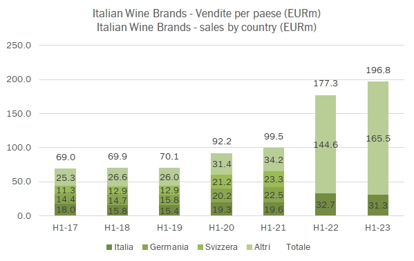 - Dal punto di vista delle divisioni, la parte Ho.Re.Ca. è cresciuta del 70% a 30 milioni, la parte wholesale è +9% a 137 milioni e la parte distance selling scende del 9% a 29 milioni, di cui il canale online chiude a 9 milioni, -2%.