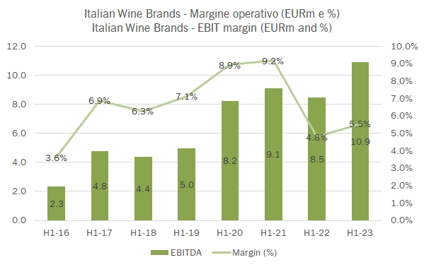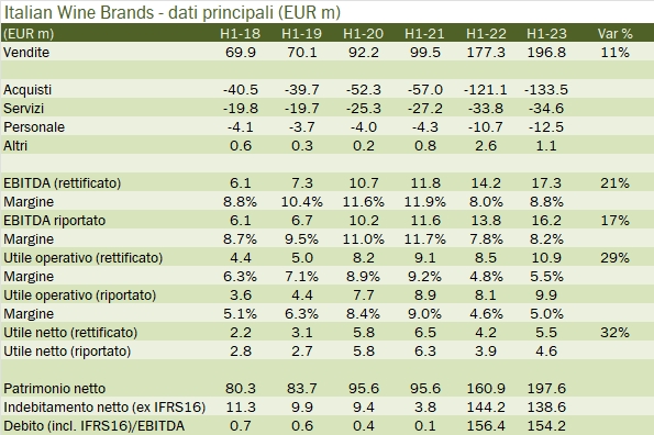 IWB ha chiuso il primo semestre 2023 con un incremento del fatturato dell’11% a 197 milioni, frutto soprattutto delle acqusizioni messe a segno negli ultimi mesi (Enovation Brands e Barbanera), con un contributo della crescita organica del 2%. I margini sono tornati a crescere, anche se restano largamente inferiori a quelli dell’anno “record” 2021, con un EBITDA al 9% delle vendite circa (8% nel 2022, 12% nel 2021) e un utile netto rettificato che ha toccato quota 5.5 milioni, +32% sul 2022. Le prospettive del gruppo sono di mantenere e leggermente migliorare questi dati nel corso del secondo semestre. L’EBITDA consolidato è visto a 40-44 milioni di euro, contro 37 milioni pro forma del primo semestre 2022 (31 milioni di chiarati), ossia un progresso di 3-7 milioni di euro. Nel primo semestre a livello consolidato (e dunque non pro-forma) l’incremento è stato di circa 3 milioni, quindi contro un +9/13 milioni di chiarato per l’anno. Non ultimo, IWB sta promuovendo una semplificazione importante della struttura societaria dopo le numerose acquisizioni, che porterà le unità legali dalle attuali 10 circa a 5, con vantaggi sia di costi che di flessibilità. Dal punto di vista finanziario, il bilancio chiude con un debito di 139 milioni di euro (154 includendo IFRS16), il che corrisponde a un rapporto di circa 4.5 volte contro l’EBITDA degli ultimi 12 mesi, che scenderebbe a 3.7 se considerassimo il punto medio dell’obiettivo EBITDA per il 2023. Passiamo a un’analisi dei dati.