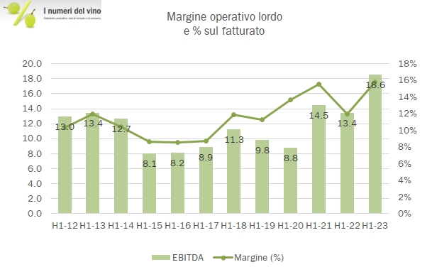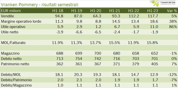 In attesa dei dati di Laurent Perrier, che chiude a settembre, analizziamo oggi i dati del primo semestre di Vranken Pommery. Sono buoni numeri, coerentemente con quanto visto durante il 2021. Anche se la crescita delle vendite rallenta (+5% nel primo semestre 2023, contro +7% nel secondo semestre 2022 e +20% nel primo semestre 2022), i margini sono in continuo miglioramento. Ciò che appare ancora più sorprendente è che Vranken Pommery ha mantenuto la sua indicazione su tutto l’anno di un +5% di fatturato. Alla luce della preoccupante evoluzione delle esportazioni di Champagne al rientro dalle vacanze, potrebbe esserci il rischio che l’obiettivo sia mancato. Ad ogni modo, per completare il quadro del primo semestre, purtroppo i progressi a livello operativo (quasi raddoppio dell’utile operativo) sono completamente vanificati dall’incremento degli oneri finanziari che alla fine portano a una perdita netta di 2 milioni, molto simile al 2022, anche se meglio che in passato. Il debito di “anno in anno” è stabile a 700 milioni, con un leggero calo del magazzino, altro segno che le cose potrebbero andare meglio. Passiamo a qualche dato e grafico in più nel resto del post.