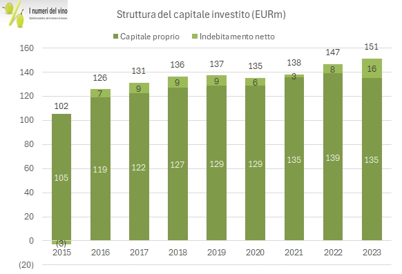 - A livello finanziario, come dicevamo il debito sale a 16 milioni di euro, +8 milioni dopo averne pagati 2 di dividendi. Masi ha investito 7.5 milioni, in linea con il passato, ha mantenuto il capitale circolante stabile grazie al calo dei crediti verso clienti che ha compensato un forte incremento del magazzino ma ovviamente mancando gli utili il debito è salito. A fine 2023 il rapporto con il MOL è di 2.2 volte, ma stiamo confrontato due dati e un anno “estremo”.