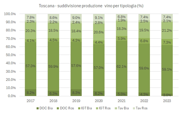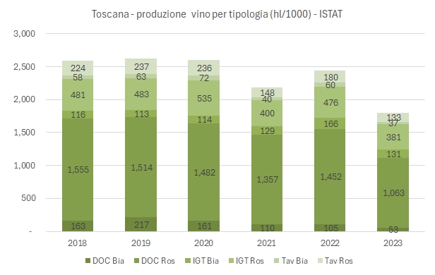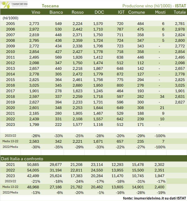 […] la produzione di vini bianchi in Toscana scesa dai 549.000hl del 2005 ai 222.000hl del 2023 (fonte inumeridelvino.it su dati […]