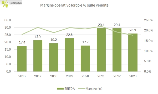 Le vendite sono calate del 4% a 146 milioni di euro, l’EBITDA scende da 29 a 26 milioni di euro e l’utile operativo è influenzato anche da una svalutazione straordinaria, passando quindi da 13 a 6 milioni di euro. Leggendo il bilancio è evidente la volontà di investire nei marchi, mantenendone il posizionamento con azioni di marketing e soprattutto con la scelta di non cedere sui prezzi, eliminando anzi le promozioni. È anche evidente che il ritmo di crescita di Ferrari degli ultimi anni è forse stato troppo veloce e lo stop del 2023 (ricavi stabili) deriva non solo dalla necessità di normalizzare le scorte nella distribuzione ma dall’esigenza di far maturare i prodotti al punto giusto, senza affrettarne la vendita sul mercato. Anche l’inizio del 2024 (primo trimestre) è stato in contrazione.