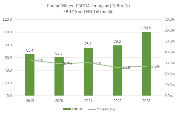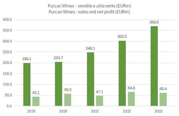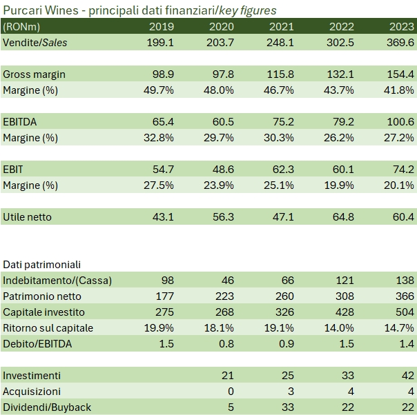 Introduciamo oggi una nuova azienda vinicola quotata nel raggio di azione del blog. Si tratta di Purcari Wines, attiva in Est Europa con base principale in Romania, quotata nel mercato locale da qualche anno, con un fatturato atteso di circa 400 milioni di RON locali (80 milioni di euro) e un utile netto di 60 (12 milioni di euro). La sua valutazione borsistica è oggi intorno ai 600 milioni di RON (120 milioni di euro), che corrispondono a circa 10 volte gli utili attesi 2024 e 5.5 volte l’EBITDA.