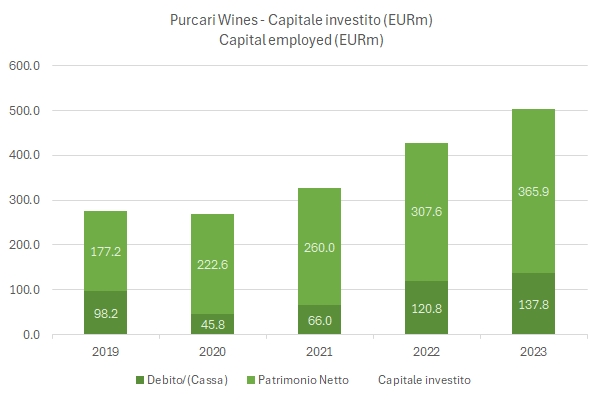 - A livello finanziario il commento principale riguarda l’esplosione del capitale circolante, passato da meno di 100 milioni prima del Covid ai 260 milioni attuali, che ha assorbito la generazione di cassa. A fine 2023, Purcari Wines aveva un debito netto di circa 140 milioni, corrispondenti a 1.4 volte l’EBITDA.