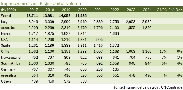 Le importazioni di vino nel Regno Unito hanno mostrato una leggera flessione nel 2024, con un calo dell’1% rispetto al 2023, raggiungendo un valore di 4,6 miliardi di euro. Nonostante questo lieve rallentamento, il mercato britannico mantiene una crescita media annua del 3% rispetto al 2019, confermando la sua posizione come uno dei mercati più rilevanti a livello mondiale. I dati rivelano tendenze divergenti tra i diversi paesi esportatori e le varie categorie di vino, evidenziando un panorama competitivo in continua evoluzione.