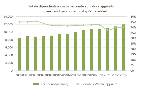 Le prospettive non sono purtroppo rosee. Le indicazioni preliminari di Mediobanca dicono che il fatturato 2024 è rimasto stabile, mentre le aspettative per il 2025 sono per una crescita molto leggera nella migliore delle ipotesi. Sarà dunque importante rivolgere l’attenzione ai costi, e in particolare a quelli gestibili, come il costo del personale che nel 2024 è cresciuto a un passo ben superiore a quello delle vendite.
