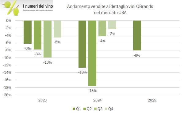 • Constellation Brands ha chiuso il primo trimestre fiscale 2025/26 con 2.52 miliardi di dollari di vendite, -6% di cui -4% organico, e un calo degli utili del 10-11%.