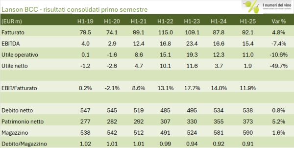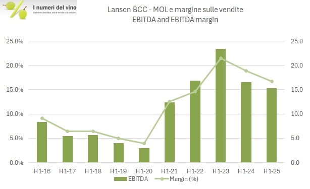 I dati del primo semestre 2025 di Lanson BCC non sono buoni. Se le vendite si sono riprese (+5%), i margini sono calati e il semestre si chiude con meno di 2 milioni di euro di utile netto, metà del semestre 2024 e lontanissimo dai 12 milioni del 2023, aiutato da componenti non ricorrenti. La notizia però non è tanto nei risultati ma nel fatto che l’azienda ha deciso di acquistare Heidsieck & C Monopole da Vranken Pommery per 50 milioni di euro. La struttura finanziaria di Lanson è gradualmente migliorata negli ultimi anni, con un rapporto debito su magazzino sceso da 1 volta a 0.9, il che lascia spazio per 50-60 milioni di euro, proprio il prezzo di acquisto dell’attività, che sarà consolidata nei conti a partire dal 1 gennaio 2026. L’azienda non ha fatto commenti particolari, né sull’impatto dell’acquisizione (annunciata comunque dopo la pubblicazione della relazione semestrale) né sulle prospettive dell’anno (come al solito…).