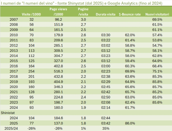 Ovviamente, non ci si può aspettare di crescere se si è un blog che parla di vino, ossia di un prodotto in declino. Ma al di là delle battute, credo che la disintermediazione dell’intelligenza artificiale stia diventando un tema. Stiamo fornendo un prodotto gratis che qualcun altro usa e vende. Un giorno, questo ci ucciderà, oppure noi stessi ci suicideremo (= chiuderemo il blog) per evitare di lavorare solo per gli altri. Quando questo giorno arriverà, beh, non ci saranno vincitori, nemmeno l’intelligenza artificiale.