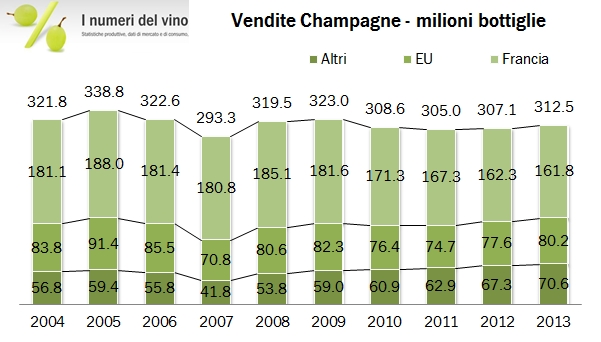 La forza delle esportazioni ha consentito allo Champagne di chiudere un buon 2015, con un progresso sia dal punto di vista dei volumi (312 milioni di bottiglie, +2%) che del valore (4.74 miliardi di euro, +5%). Ancora una volta la Francia non ha aiutato, chiudendo stabile, e lo stesso vale per quasi tutti gli altri mercati europei salvo, udite udite, l’Italia e la Spagna. Proprio nel nostro paese si è verificato un incremento del 10% delle spedizioni, dopo il progresso già registrato nel 2014. Con 6.4 milioni di bottiglie siamo sempre lontani dalle oltre 9 milioni di bottiglie importate prima della crisi 2009, ma qualche progresso si vede. A sostenere il famoso vino spumante francese sono i extra Euro. Il Regno Unito, gli USA, il Giappone e l’Australia. In questo contesto sono chiaramente gli esportatori “forti” a guadagnarci, quindi di nuovo le maisons, a spese dei vigneron e delle cooperative: la loro quota di mercato ha ormai raggiunto il 72% del totale. Come vedremo tra qualche giorno, non in tutti i casi l’andamento positivo delle vendite si traduce in migliori margini, perlomeno per alcuni operatori come Vranken Pommery e Lanson, molto esposti ai mercati meno performanti, rispetto a una grande casa come LVMH. Andiamo a leggere qualche numero insieme.