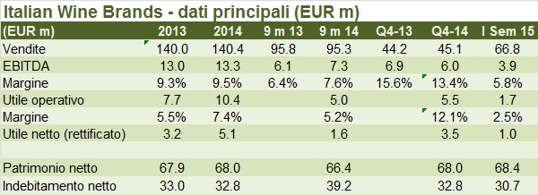 Italian Wine Brands ha riportato a metà settembre i risultati del primo semestre 2015. Purtroppo, come avevo già avuto modo di commentare qualche mese fa, la comunicazione finanziaria dell’azienda resta del tutto inadeguata, non offrendo alcun appiglio per poterne valutare l’andamento economico finanziario in confronto con lo scorso anno, anche se vengono forniti numerosi dettagli circa la suddivisione e l’andamento delle vendite (+4% circa). L’azienda insiste: “IWB è stata costituita il 27 novembre 2014, pertanto i risultati al 30 giugno 2015 non sono comparabili con alcun risultato consolidato di pari periodo nell’anno precedente”. Peccato che sia Giordano Vini che Provinco esistevano (come si evince dal fatturato fornito nella relazione semestrale) eccome e nessun dato circa il loro semestre 2014 è stato fornito.
