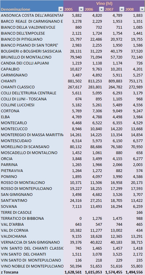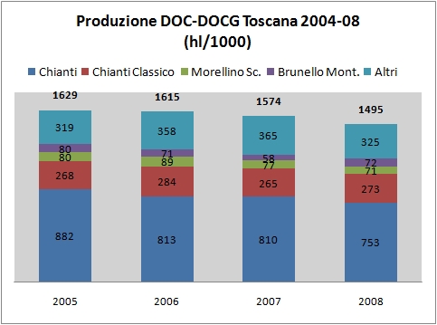 Toscana – produzione di vini DOC e DOCG – aggiornamento 2008