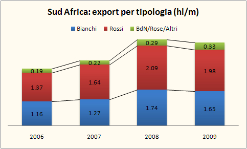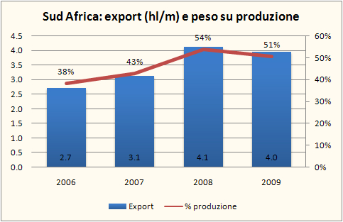 nessun commentoLe esportazioni del Sud Africa del 2009 hanno segnato il passo, dopo diversi anni di crescita ininterrotta. Pubblichiamo oggi i dati forniti da SAWIS che fanno riferimento ai volumi in ettolitri esportati. In un contesto di leggero calo del quantitativo esportato (-4%), i sudafricani sono comunque riusciti a portare a casa un buon risultato, se si considera quanto segue: (1) il mix delle esportazioni sta migliorando, con i vini imbottigliati in crescita dell’8% a compensare il calo del 18% dei vini sfusi; (2) le esportazioni nel mercato chiave per il Sud Africa, cioe’ il Regno Unito, hanno fatto segnare un +14%; anche le esportazioni nei due altri mercati importanti Germania e Svezia sono in crescita rispettivamente del 5% e del 31%. E’ tutto oro quello che luccica? Probabilmente no, se considerate che la valuta sudafricana ha perso pesantemente nel corso del 2009. Nel 2010 sta recuperando in modo molto significativo (siamo a circa +20% per il Rand contro l’euro nei primi mesi del 2010 contro lo stesso periodo del 2009), bisogna vedere come si comportera’ il Sud Africa, tenendo conto che il suo settore vinicolo e’ particolarmente esposto alle esportazioni. E poi quest’anno ci sono i mondiali… quale migliore occasione per promuovere il vino sudafricano con cosi’ tanti potenziali consumatori che arrivano a casa propria dall’estero?