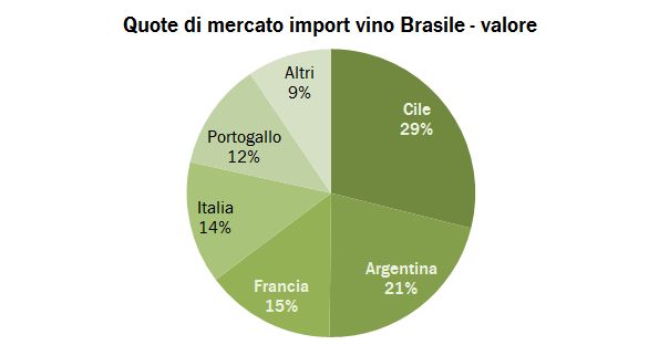 Il sito Uvibra ha appena pubblicato i dati sulle importazioni di vino in Brasile, rielaborati qui per fornire un quadro dei valori e non solo dei volumi. Abbiamo già affrontato il tema sul blog: il Brasile è un grande mercato per diversi prodotti e gli italiani hanno presenze forti (vedi Campari), ma nel segmento vino ciò non succede ancora. È in parte colpa dei forti dazi doganali all’importazione (che favorisce cileni e argentini), è forse una questione di educazione dei consumatori ma certamente i 40 milioni di dollari che secondo i brasiliani l’Italia ha esportato in Brasile sono poca cosa al confronto di quanto fa l’Italia in altri mercati. Di certo, la crescita è molto forte: +17% nel 2011 e circa +16% annuo negli ultimi 5 anni, onestamente da livelli piuttosto bassi.