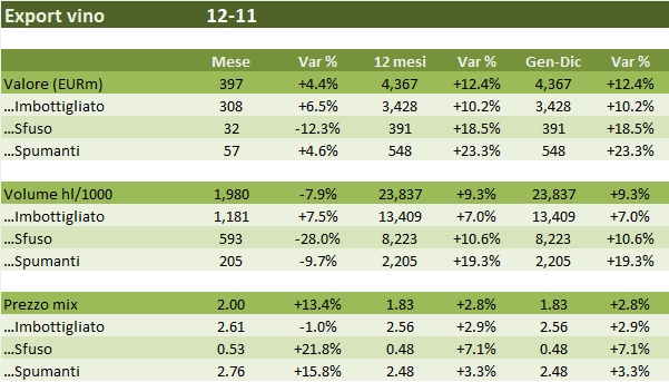 Esportazioni di vino italiano – aggiornamento dicembre 2011