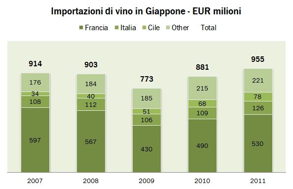 Giappone: importazioni di vino e quote di mercato – aggiornamento 2011