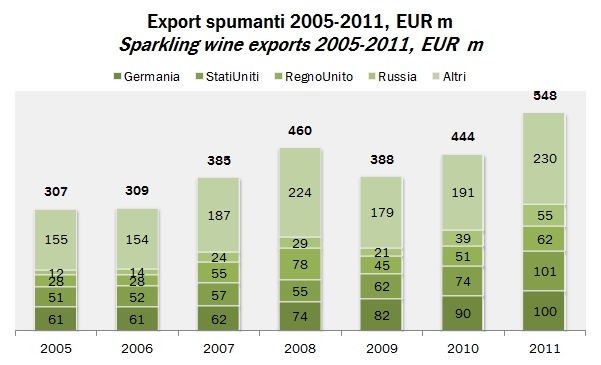Esportazioni italiane di spumante – aggiornamento dicembre 2011