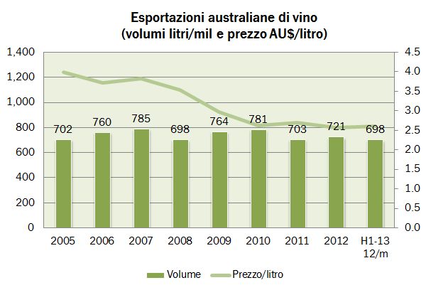 I numeri delle esportazioni francesi del primo semestre 2013 sono decisamente brutti. A partire da febbraio i dati hanno cominciato a peggiorare (con un intermezzo ad aprile per via della tempistica pasquale) e alla fine del primo semestre l’export totale di vino è rimasto fermo a 3.6 miliardi di euro, che significano +0.6% rispetto al corrispondente periodo del 2012, con volumi in calo dell’1% a 6.97 milioni di ettolitri. Da dove arriva la delusione? Dal Bordeaux, che negli ultimi due anni ha registrato crescite vigorose (2 volte +30-35% nel semestre 2011 e 2012) e che ora sembra avere preso la direzione del calo (-6% con un mix combinato negativo di volumi e prezzi). Rappresentando circa un terzo dell’export totale (un altro 23% è Champagne) è chiaro che se non gira il Bordeaux è difficile che la Francia vada bene. Infatti, a guardare le categorie più assimilabili all’Italia come fascia di prezzo, le crescite non sono dissimili alle nostre, tra il 7 e l’8% contro il semestre 2012. Detto questo, il segnale della Francia (che è anche supportato dall’evidenza negativa di altri paesi come l’Australia e l’Argentina) è evidente: il commercio mondiale di vino sta rallentando vistosamente. Andiamo a guardare i dati.