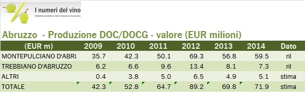 Abruzzo – produzione e valore vini DOC/DOCG – aggiornamento 2014