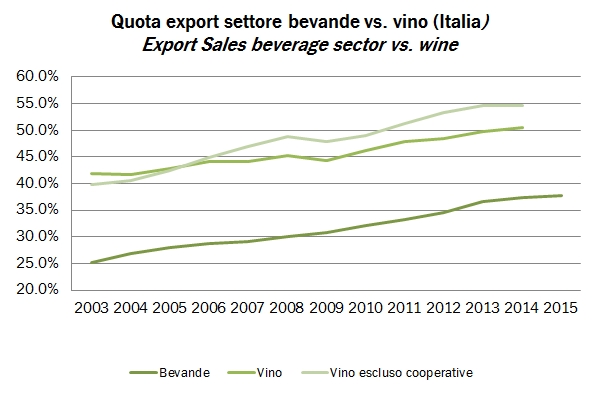 Settore vino contro settore bevande – dati Mediobanca 2015