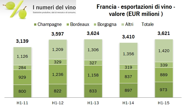Francia – esportazioni di vino – aggiornamento primo semestre 2015