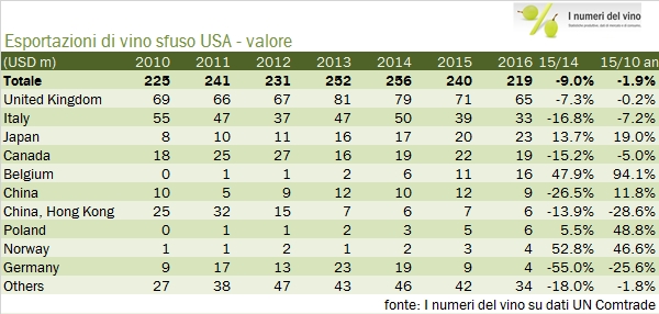 USA – esportazioni di vino 2016