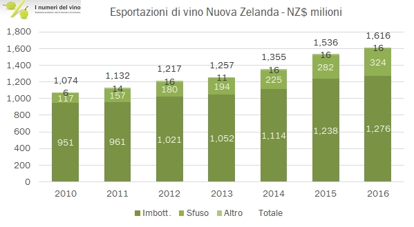 Nuova Zelanda – esportazioni di vino 2016