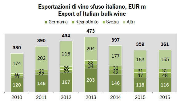 I dati sulle esportazioni di questi primi mesi del 2016 sono molto volatili, anche a causa delle differenze di calendario (anno bisestile, Pasqua leggermente anticipata). Ciò non aiuta a leggere le tendenze sottostanti, che vanno meglio identificate su periodi più lunghi. Detto questo, il primo trimestre chiude con un leggero incremento dell’export, circa +3%, essenzialmente legato alla crescita degli spumanti, che potrebbe essere stata leggermente aiutata dalla Pasqua. Intendiamoci, i dati non sono negativi: le esportazioni globali italiane sono rimaste stabili a 99 milliardi di euro nel trimestre e la categoria dove sta il vino (con alimentari e tabacco) è cresciuta da 6.9 miliardi a 7.1 miliardi (+1.8%). Certamente avendo il cavallo degli spumanti che sta correndo, forse i dati non sono così positivi come si poteva sperare. I vini fermi imbottigliati non crescono più a quanto è dato di vedere, così come sembra essersi esaurito il calo dei vini sfusi. Ne parleremo più diffusamente nei prossimi giorni con l’analisi dei vini spumanti, ma il loro incremento è sempre più legato al Regno Unito, che in questi giorni è al centro dell’attenzione per questo referendum sull’uscita dall’Unione Europea. Se vincesse il “sì” (“usciamo”) la sterlina perderebbe immediatamente valore, rendendo più costosi i nostri prodotti. Certamente un problemino da tenere in considerazione. Per ora, soffermiamoci sui dati trimestrali.