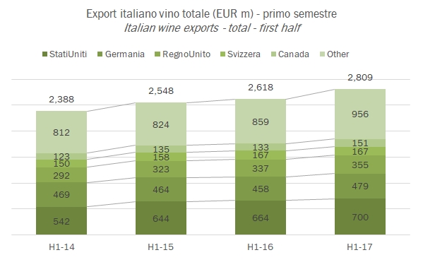 Esportazioni di vino italiano – aggiornamento primo semestre 2017