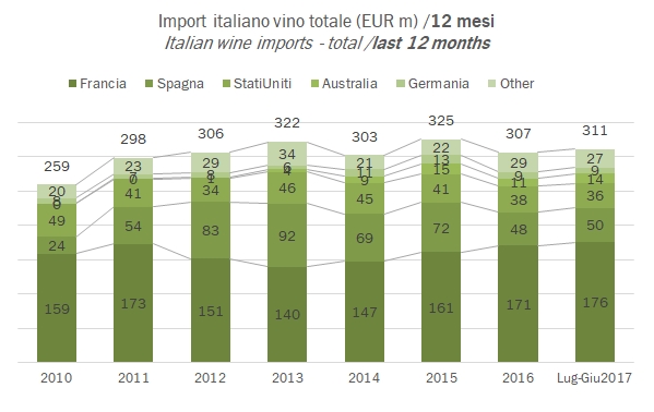 Importazioni di vino in Italia – aggiornamento primo semestre 2017