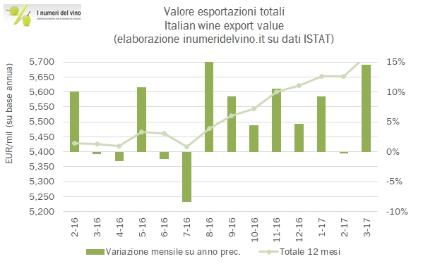 Proseguiamo l’analisi delle vendite di vino al dettaglio nella GDO grazie al contributo di IRI. I dati del secondo trimestre sono indubbiamente positivi, con o senza l’effetto della Pasqua, che ha spinto soprattutto le vendite di spumante dopo un primo trimestre sottotono. I dati puri sul trimestre dicono +6%, che portano il primo semestre a +2.8%, con una spinta forte degli spumanti (+25% nel trimestre, +10% nel semestre) tutta legata all’andamento dei volumi. Un dato allineato a quello relativo agli ultimi 12 mesi: +2.9%. L’effetto prezzo-mix continua a dominare e “spiega” quasi tutta la crescita delle vendite, mentre i volumi subiscono l’impatto negativo di alcune categorie in declino, e più precisamente (con diversi tagli e nel semestre): in vini in formati diversi dalla classica bottiglia (-1.5%), i vini rossi (-1.3%), i vini non DOC o IGT (-1.5%) e, negli spumanti, i vini Charmat dolci (-2.3%). Passiamo a leggere qualche dato insieme.
