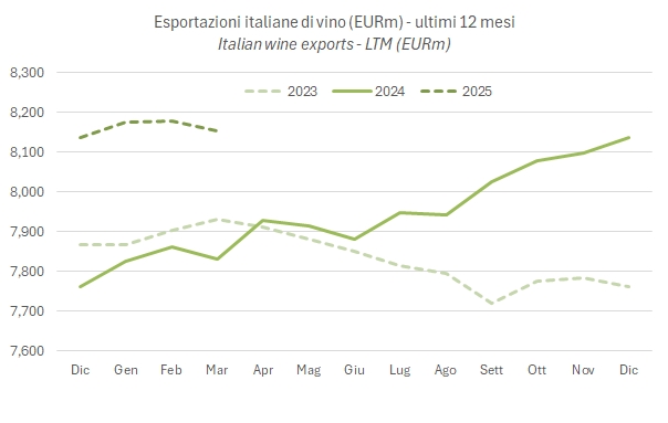 Esportazioni di vino Italia – aggiornamento primo trimestre 2025