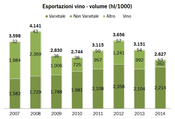 Dopo due anni molto positivi dal punto di vista produttivo, l’Argentina si avvia a chiudere una vendemmia 2015 leggermente sotto la media storica (-7%). Il paese è caratterizzato da una produzione molto significativa di mosto, in leggero calo negli ultimi anni, che rappresenta a occhio un quarto della produzione totale. Noi come al solito ci focalizziamo di più sulla parte vino, analizzando dettagliatamente il set di numeri 2014, dato che sul 2015 abbiamo soltanto un paio di numeri. Cosa “portare a casa” da questa pagina di commenti? 1) che l’Argentina sta strutturalmente riducendo la produzione di mosto; 2) che dopo qualche anno di vendemmie povere, la produzione di vino bianco è tornata in auge nel 2014; 3) che accanto a Mendoza, che ancora rappresenta la maggior parte della produzione, la zona di San Juan sta emergendo, anche se nel 2014 la produzione di vino sembra essere calata in modo più marcato che nel resto del paese.