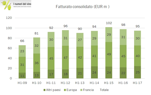 Dopo aver analizzato i dati di Nosio, passiamo ai numeri consolidati del gruppo Mezzacorona, che al pari della controllata ha questa anomalia della chiusura 2016 di 11 mesi. Ciò impone di analizzare i dati o in una prospettiva biennale (2017 contro 2015) oppure di rettificare le variazioni percentuali annue di circa il 7-8% al ribasso per considerare il mese mancante. Molti dei temi di Nosio si ripropongono: la crescita delle vendite del 13%, che quindi diventa 5-6% una volta aggiustata, l’andamento ancora più marcatamente positivo del mercato italiano e il calo piuttosto vistoso dei margini di profitto, per i medesimi motivi già visti la scorsa settimana. Detto questo, la cooperativa ha aumentato ulteriormente a 64 milioni di euro le liquidazioni ai soci, il massimo storico, ed è riuscita a ridurre ulteriormente l’esposizione debitoria. Probabilmente il 2017 sarà un anno di picco, vista la scarsa produzione in arrivo per la prossima annata… ma per il momento vale la pena di concentrarci sui questi dati. Passiamo all’analisi.