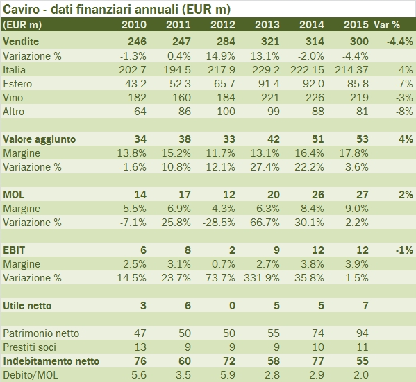 Caviro ha modificato la chiusura del suo esercizio al 31 agosto, motivo per cui oggi guardiamo al bilancio 2020 (31 agosto 2020), pur avendo saltato il 2019 che è stato composto di soltanto 8 mesi. Risulta quindi impossibile confrontare i dati economici con l’anno precedente (ma lo faremo con il 2018), mentre invece per i dati finanziari il dato puntuale al 31 agosto 2019 è disponibile. Passando ai numeri, senza dubbio si tratta di dati positivi. Caviro è ben posizionata nell’ambito della crisi COVID, con una forte esposizione al canale off-premise (grande distribuzione in particolare) sia sul mercato domestico (72% del fatturato) che su quelli esteri. Infatti, rispetto al 2018, le liquidazioni ai soci sono state del 2% più elevate, mentre in euro sono state del 2% più basse a fronte di un prezzo medio calato del 4% circa (in linea con il -5% pagato da Caviro per le forniture esterne) e il fatturato ha raggiunto il picco storico di 351 milioni di euro. Anche la posizione finanziaria non sembra aver subito un particolare impatto, anzi. L’indebitamento netto scende a 51 milioni, nonostante l’incremento degli investimenti (24 milioni) e l’acquisizione del 30% rimanente di Cesari in Valpolicella (4 milioni), grazie una efficiente gestione del capitale circolante.