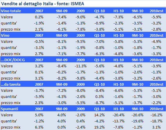 Vendite di vino al dettaglio Italia – aggiornamento 2010