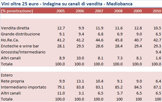 Canali di vendita vino Italia 2010 – fonte Mediobanca