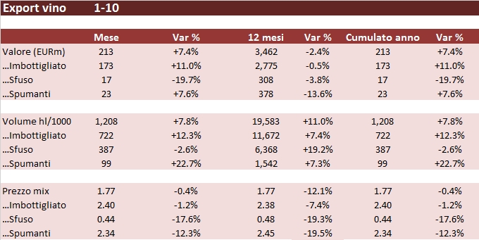 Esportazioni di vino italiano – aggiornamento gennaio 2010