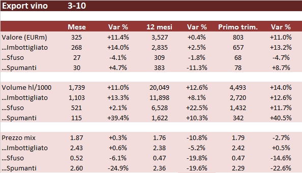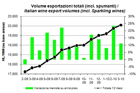 Esportazioni di vino italiano – aggiornamento marzo 2010