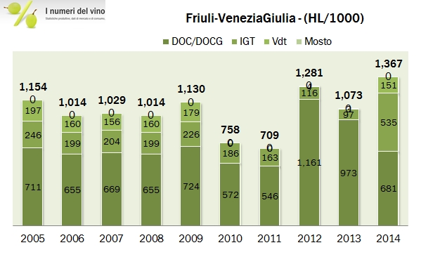 Friuli Venezia Giulia – produzione di vino – aggiornamento 2014