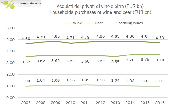 Mah… saranno giusti? Questa è la prima domanda che mi viene quando guardo questi dati di Eurostat sul valore della produzione di vino in Europa ai prezzi di base. Cioè un po’ lo stesso lavoro che facevo sulle regioni italiane (e di cui non trovo più i dati, a proposito…) ma applicato alle nazioni dell’Europa. Dunque giusto per buttare due numeri sul tavolo, secondo Eurostat la produzione di vino in Europa ai valori di base è stata nel 2017 di 21 miliardi di euro nel 2017 e poco più di 22 nel 2016. Di questi 22, 18.5 sono vini di qualità (e questo ci sta) e circa 3.7 sono di altri vini. Poi dice che di questi 18.5, 8.2 sono Francia e 7.1 sono Italia: qui invece casca l’asino, perché tutti gli altri dati che noi calcoliamo compreso questo che penso sia la rappresentazione della realtà su cui sono più tranquillo, il divario è molto superiore. Potrei anche dirvi che nella tabella si legge che la Germania è davanti alla Spagna, anche se le sue esportazioni di vino sono circa un terzo. Il problema di questa tabella penso sia il problema dell’Europa. Ciascuno spara dentro il numero che gli pare, poi viene fatta una somma e tutti amici come prima. Perché l’ISTAT pubblica in Italia 4.7 miliardi di euro e poi in questa tabella ne vengono fuori 7.7? Detto questo, i dati sono dati, sono anche “firmati” da Eurostat e quindi vale la pena che chi analizza il settore abbia presente anche questa fonte, che raramente abbiamo citato nel blog nel passato.