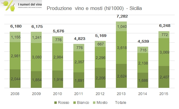 L’andamento delle superfici convertite e in conversione bio ha segnato un balzo deciso nel 2015, secondo i dati diffusi dal SINAB, passando da 72mila a 83mila ettari, quindi raggiungendo il 13% della superficie vitata italiana secondo i dati ISTAT. Si tratta di un andamento largamente previsto, essendoci da ormai tre anni a questa parte un “magazzino” in conversione superiore a 20mila ettari, dei quali almeno un terzo è destinato a “passare al biologico”. Quindi, per tirare le fila, e escludiamo gli ettari in conversione il biologico copre oggi 54mila ettari, dunque il 9%. Come già per le scorse edizioni non abbiamo il dettaglio del convertito/in conversione su base regionale e dobbiamo quindi adattarci ai dati disponibili. La regione con la maggiore superficie vitata resta naturalmente la Sicilia, sia per ettari (32mila), che per quota sul totale vitato (30%). La Sicilia è anche la regione che ha aggiunto più ettari nel 2015, quasi il 5% del totale in più rispetto al 2014. In questo senso, le altre due regioni da menzionare sono la Toscana (incremento di penetrazione del 4% e ormai al 20% del totale) e la Lombardia, che partendo da lontano (12% biologico soltanto) ha aggiunto il 3.3% della superficie vitata nel solo anno 2015. Proseguiamo con le analisi dettagliate.