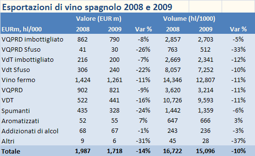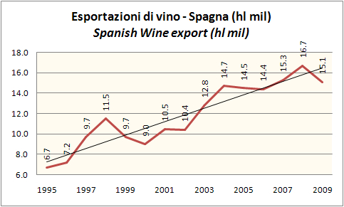 Spagna – esportazioni di vino, aggiornamento 2009