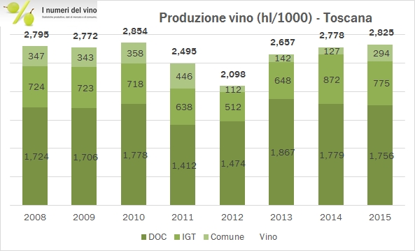 Toscana – produzione di vino 2015 – dati ISTAT
