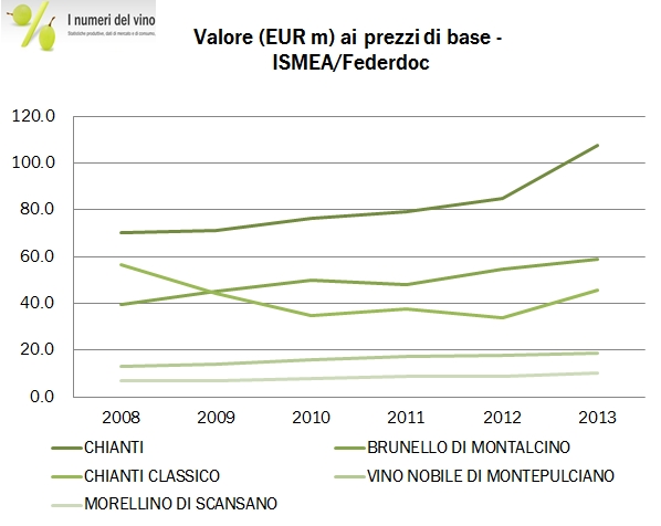 Cominciamo la rassegna regionale con la Toscana. A titolo di premessa, le regioni in cui non c’è produzione dichiarata di mosto, come questa, hanno dei dati provinciali coerenti con quelli regionali. Altrimenti abbiamo un problema, dato che in alcuni anni (come il 2014) il mosto è incluso nei dati provinciali, in altri invece no. In aggiunta ai dati produttivi ho ripreso la statitstica del valore della produzione vinicola regionale, che però è aggiornata al 2013. Di qui a fine anno dovremmo quindi riuscire a completare il giro di tutte le regioni italiane.